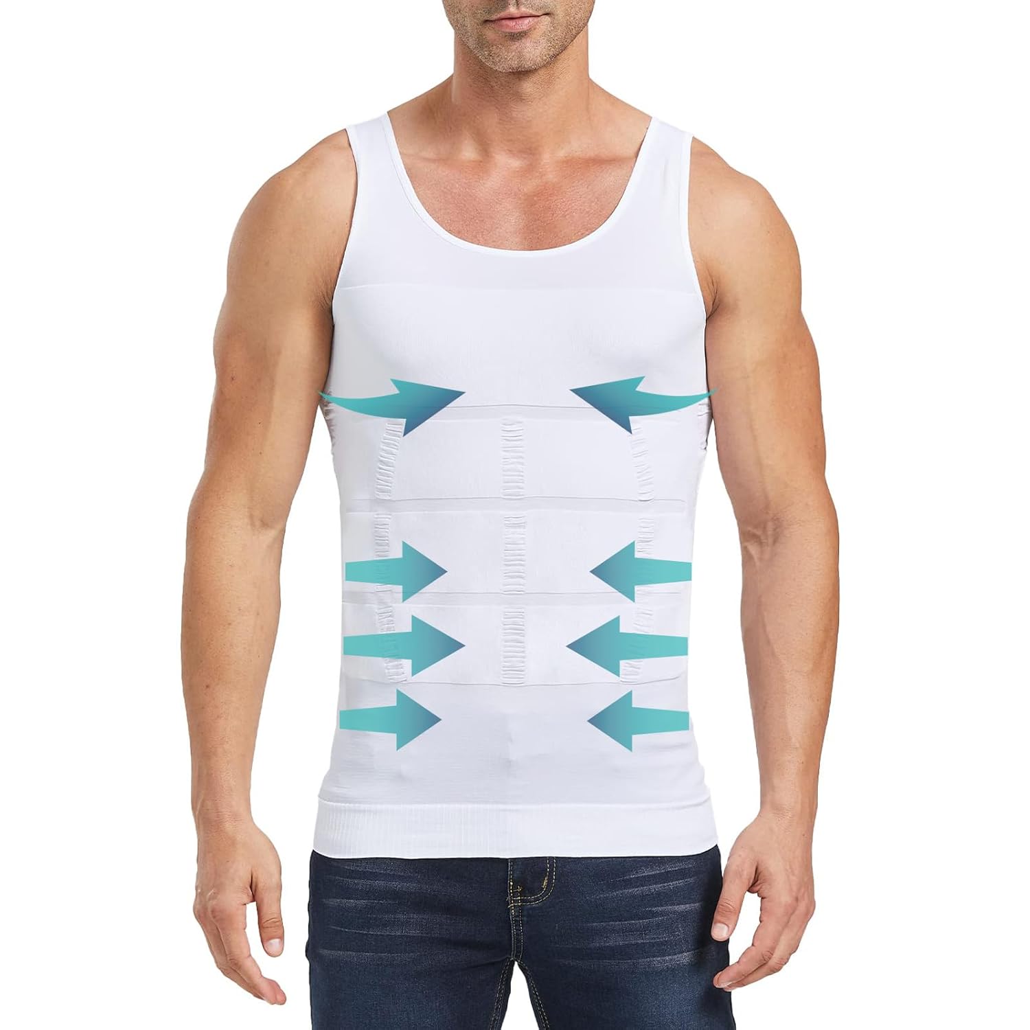 Achieve a sleek and confident look with this 4-pack of Men's Body Slimming Shapewear Tank Tops. Designed with thermal compression technology, these tank tops provide targeted tummy control and a streamlined fit, perfect for workouts or everyday wear. Crafted in versatile white, they are made from breathable, stretchy fabric for maximum comfort and durability. Ideal for enhancing posture and shaping your physique, these tank tops are a practical and stylish addition to your wardrobe.