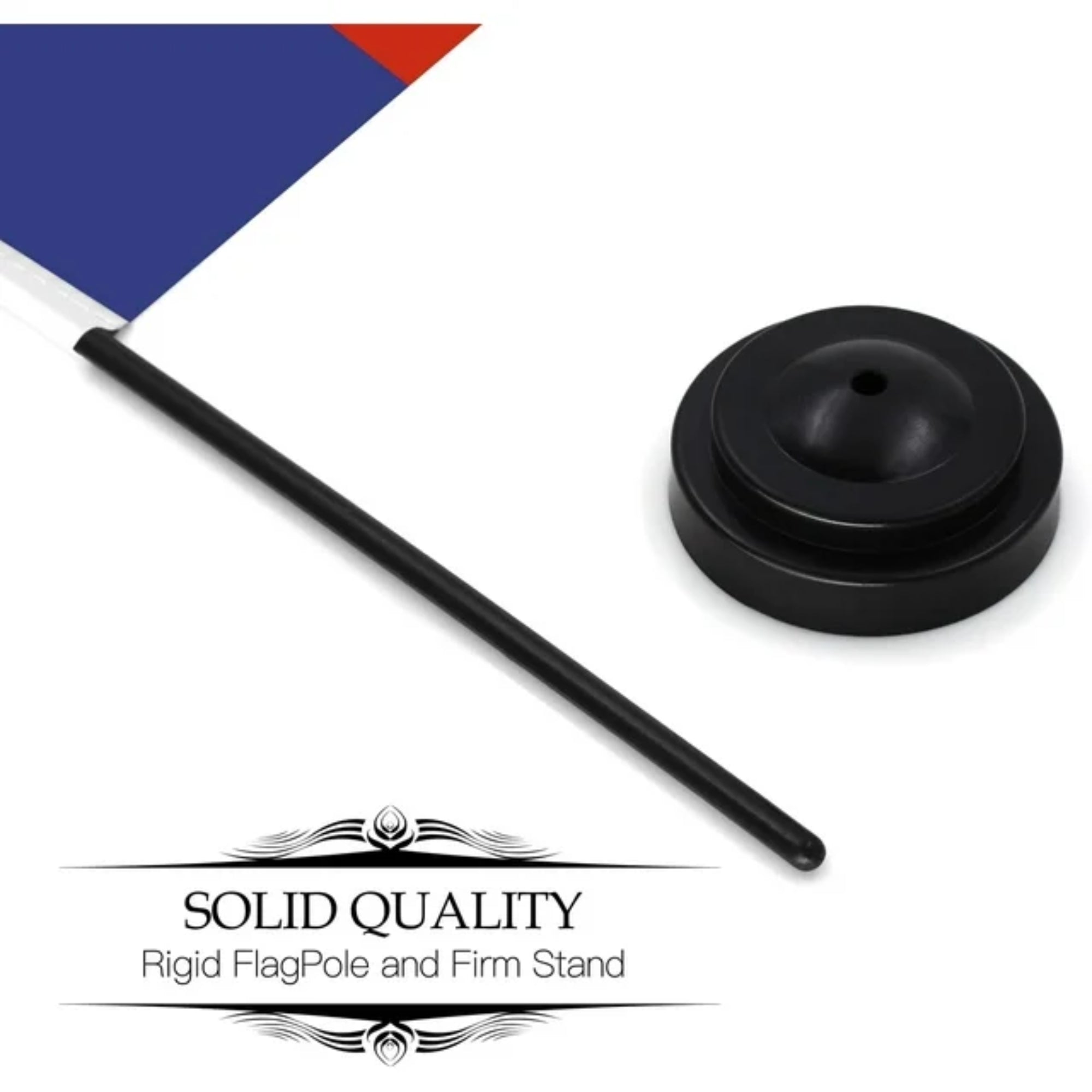 Show your Texas pride with the Anley Texas Desk Flag Set, featuring a vibrant 6 x 4 inch Lone Star State flag mounted on a 12-inch solid black pole with a sleek spear top. Crafted from durable, weatherproof polyester, this miniature flag is UV resistant and perfect for indoor display at desks, tables, or shelves. Ideal for patriotic events, offices, classrooms, or as a thoughtful gift for Texans and flag collectors alike.