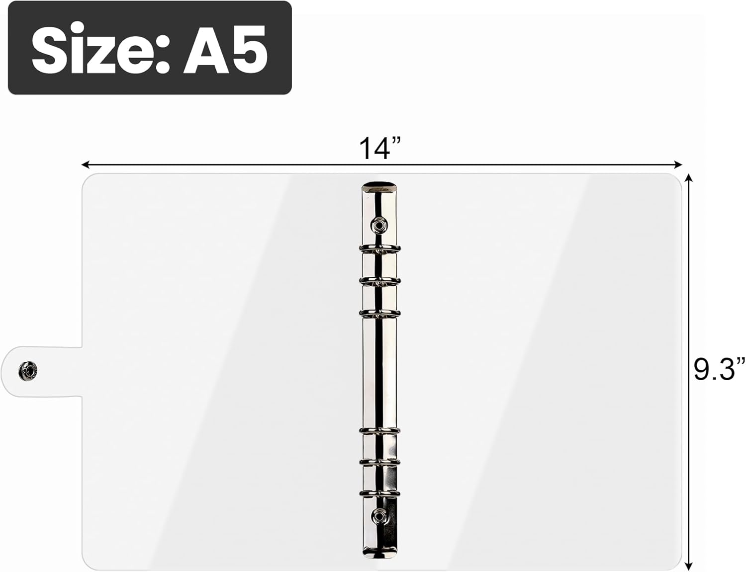 Stay organized and stylish with this 6-pack of A5 Clear PVC Binders from Elsjoy. Each binder features a durable yet flexible transparent cover, stainless steel 6-ring binding, and a secure snap button closure. Ideal for school, work, journaling, or home organization, these refillable binders are perfect for holding A5-sized sheets while maintaining a clean and minimal look.