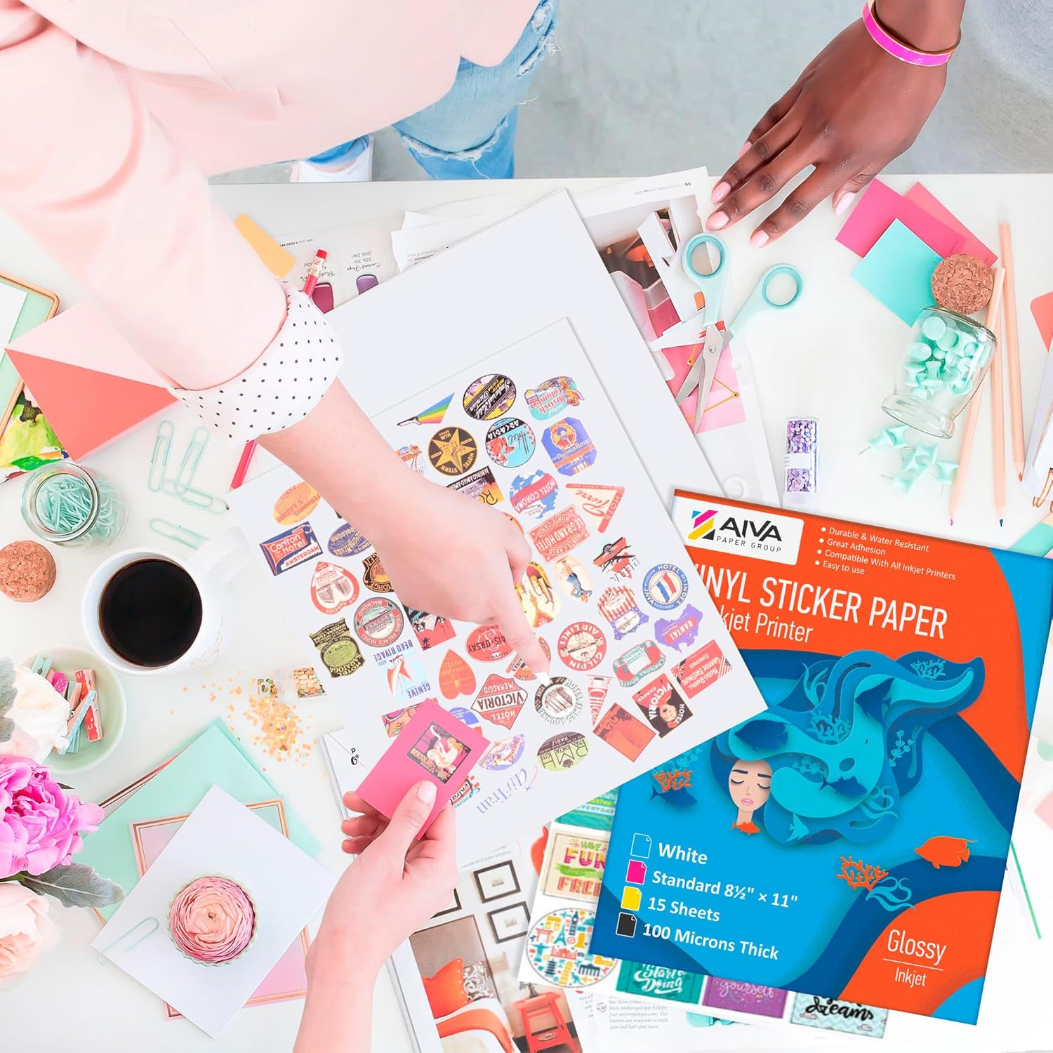 Create custom stickers and labels with Limia's Care waterproof vinyl sticker paper. This pack includes 75 glossy white self-adhesive sheets, designed for inkjet printers. Ideal for crafts, business branding, or personal projects, each letter-sized sheet offers high-quality print resolution and lasting adhesion.