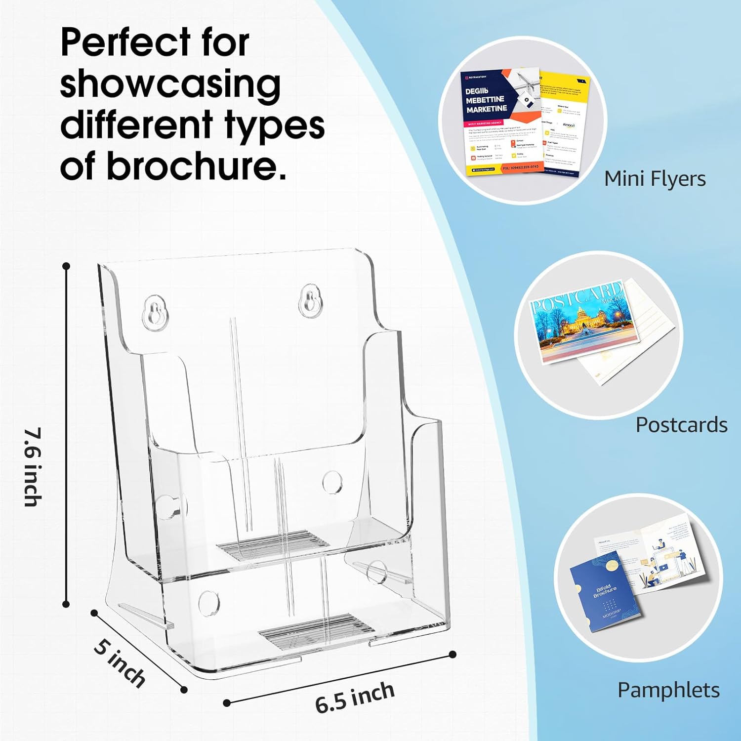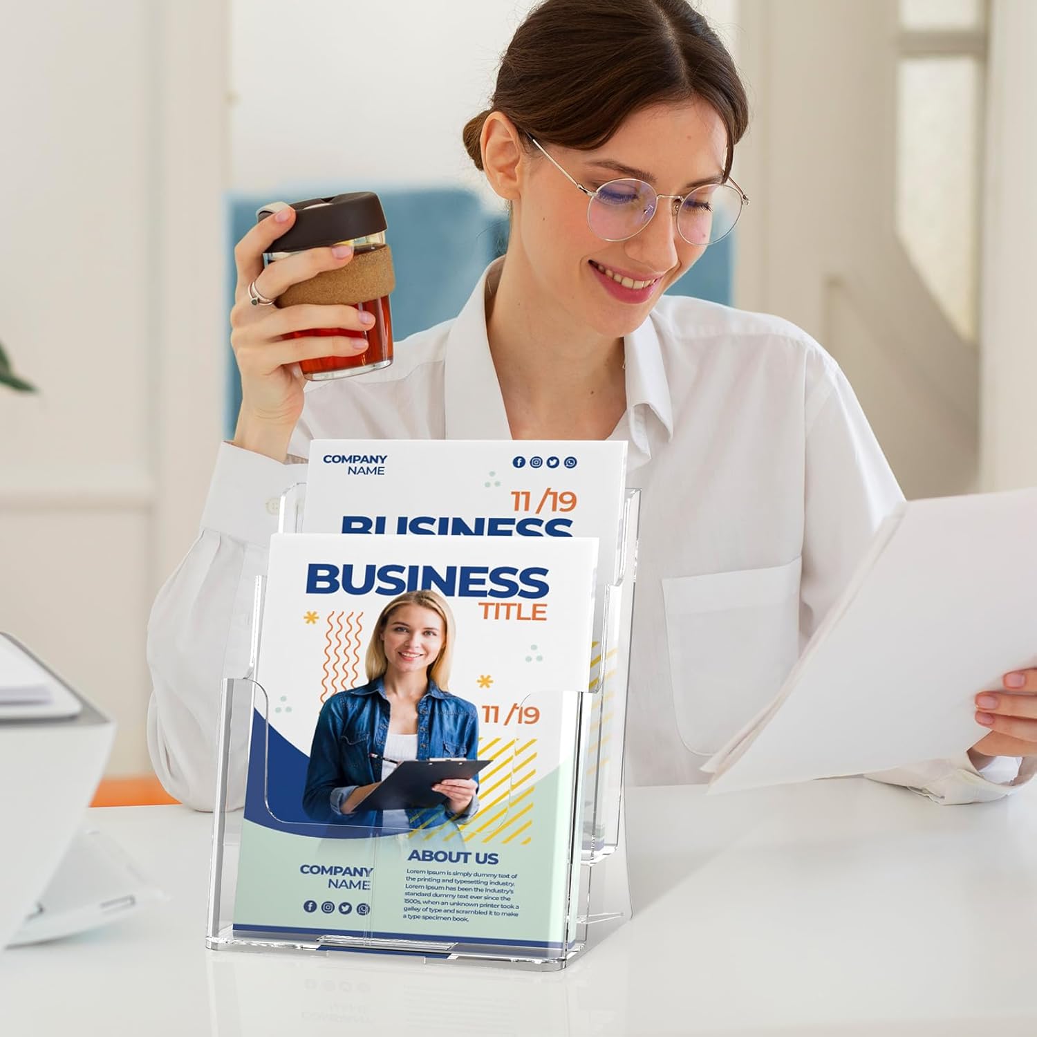 MaxGear 2-Tier Acrylic Brochure Holder 6x9 Inch – Clear Literature Display Stand for Pamphlets, Booklets, Flyers – Wall Mount or Countertop Use – 4 Pack