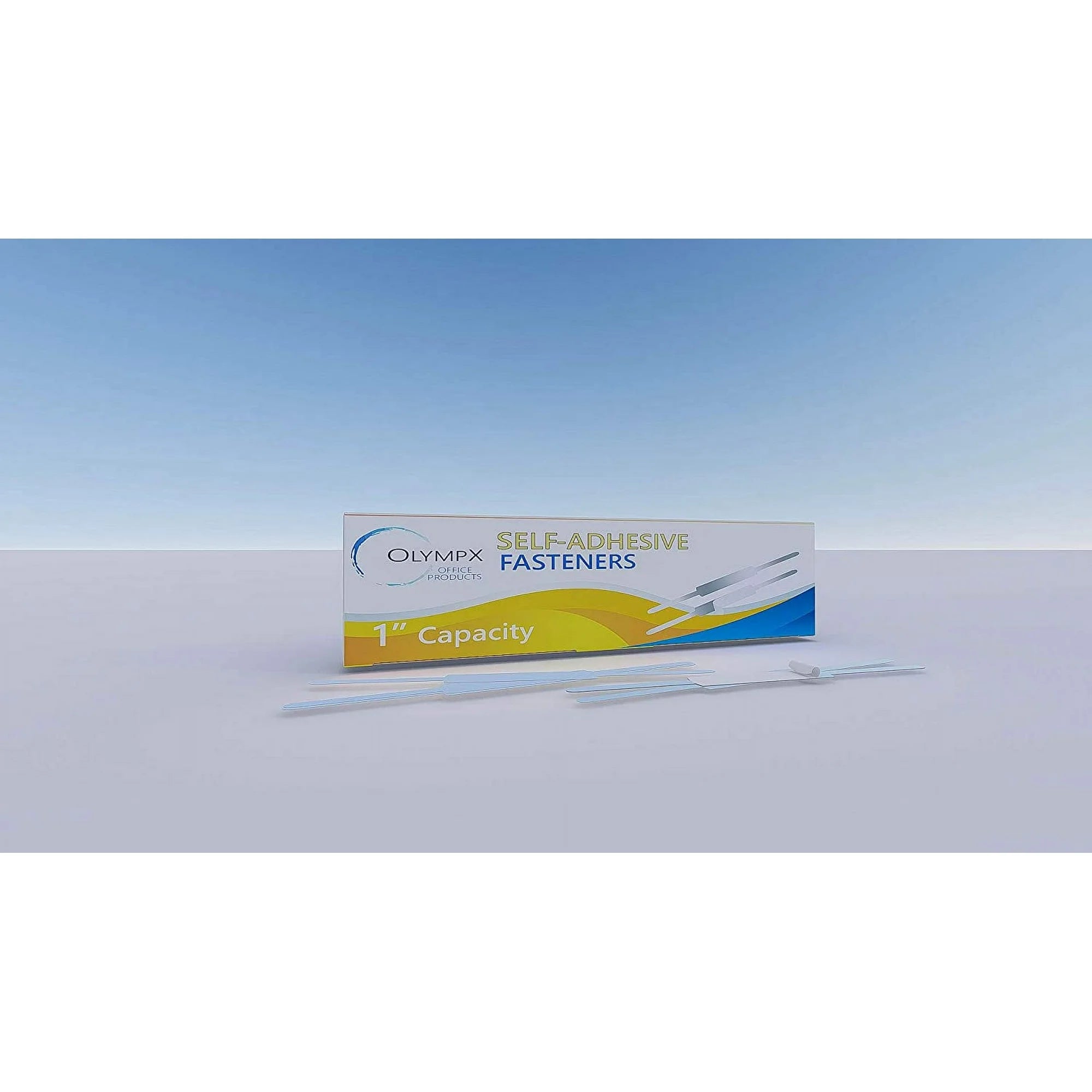 Organize your documents with ease using OLYMPX Self-Adhesive Prong Fasteners. This 100-piece set includes sturdy alloy steel fastener bases with a 1-inch capacity and a 2.75-inch adhesive base, ideal for securing punched papers in file folders. Designed with a sleek, modern style, each fastener sticks firmly to most surfaces and holds documents securely in place—perfect for offices, schools, or home filing systems. These durable, easy-to-use fasteners help streamline document storage and keep your files neat and accessible.