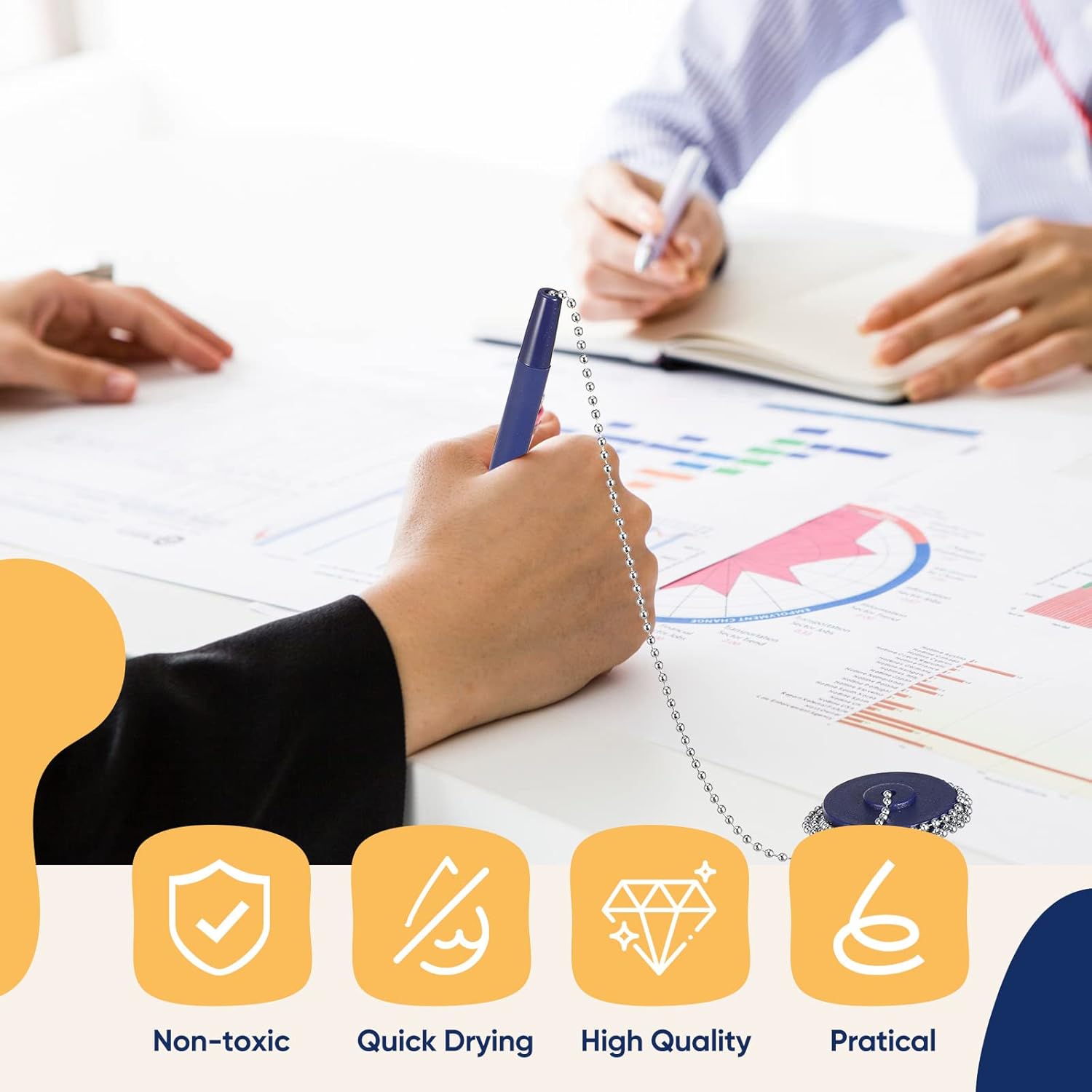 Ideal for busy offices, counters, or home use, the Pasimy Secure Pen set includes 6 blue ink pens with adhesive chains and holders to keep your pens in place. Featuring a retractable design and refillable ink, these multifunction pens are both practical and stylish. Designed for ambidextrous users, these pens offer a smooth writing experience with a broad drill point tip.