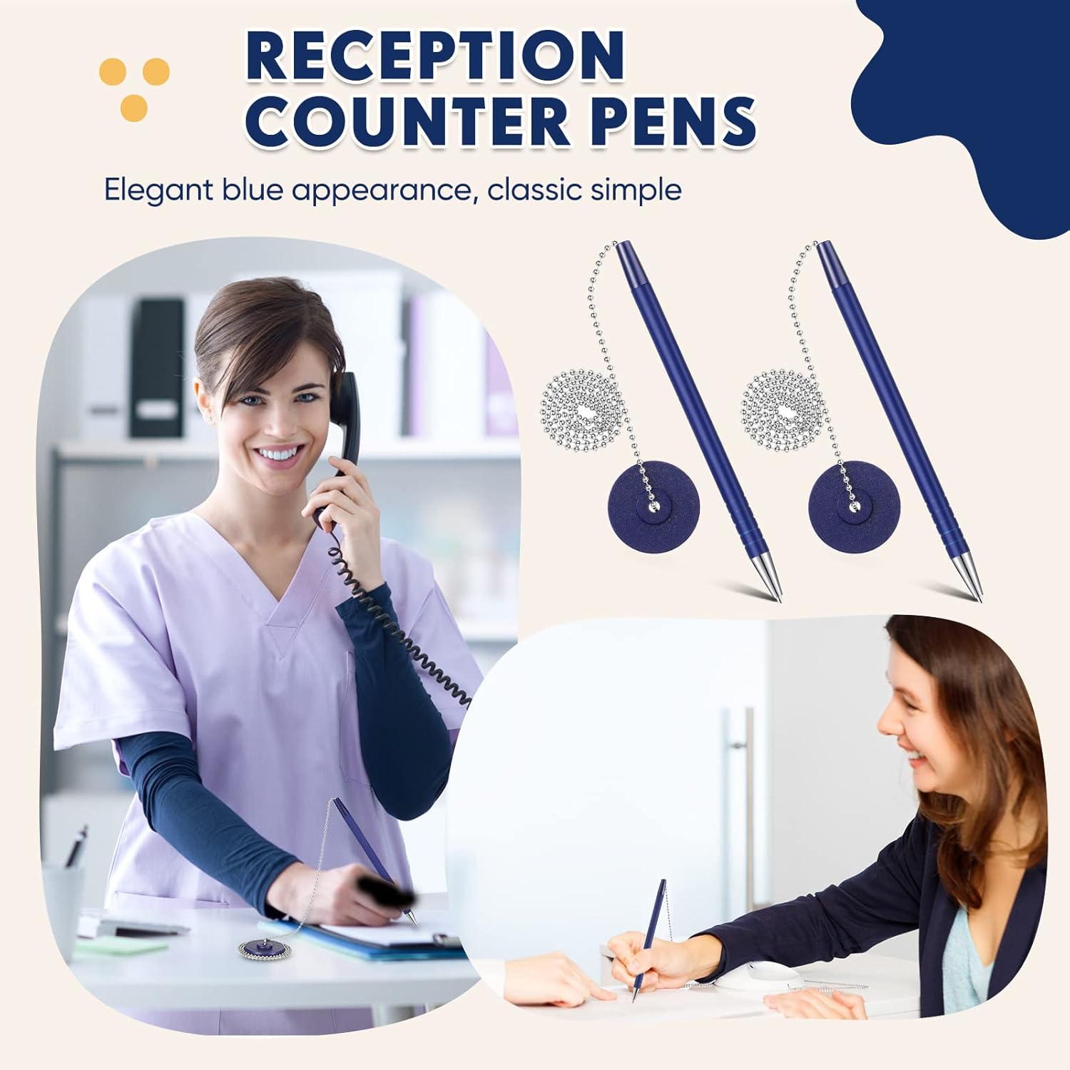 Pasimy Secure Pen with Adhesive Chain and Security Blue Ink Pen Holder for Home Office Supplies (6 Pieces)