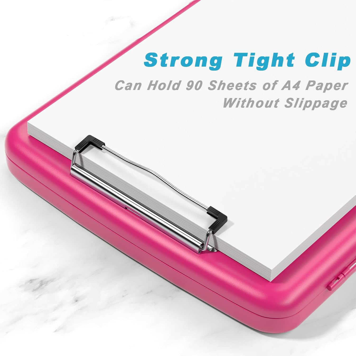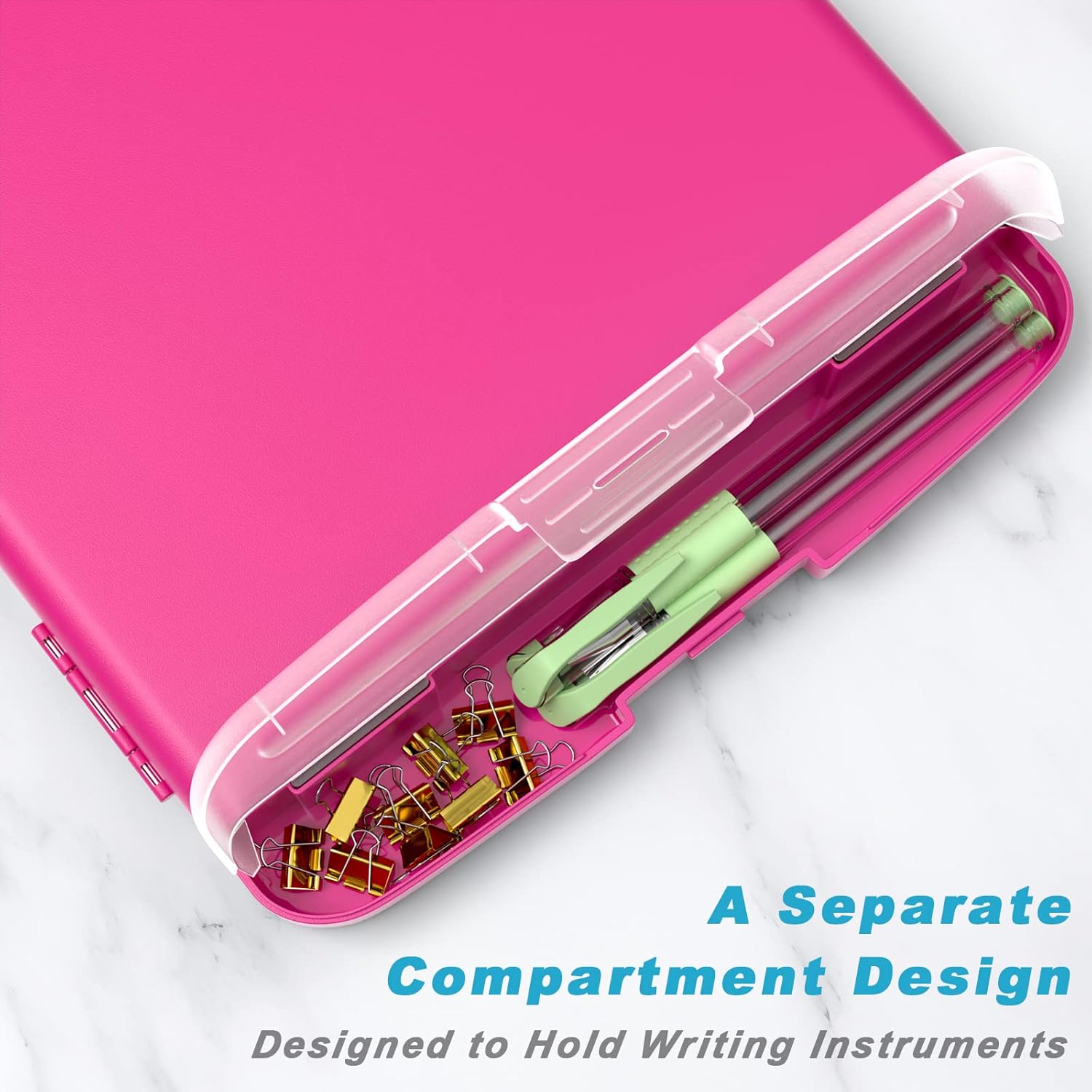 Rimilak Plastic Clipboard with Storage – 8.5 x 11 High Capacity Side-Opening Folio Nursing Case with Pen Holder – Red