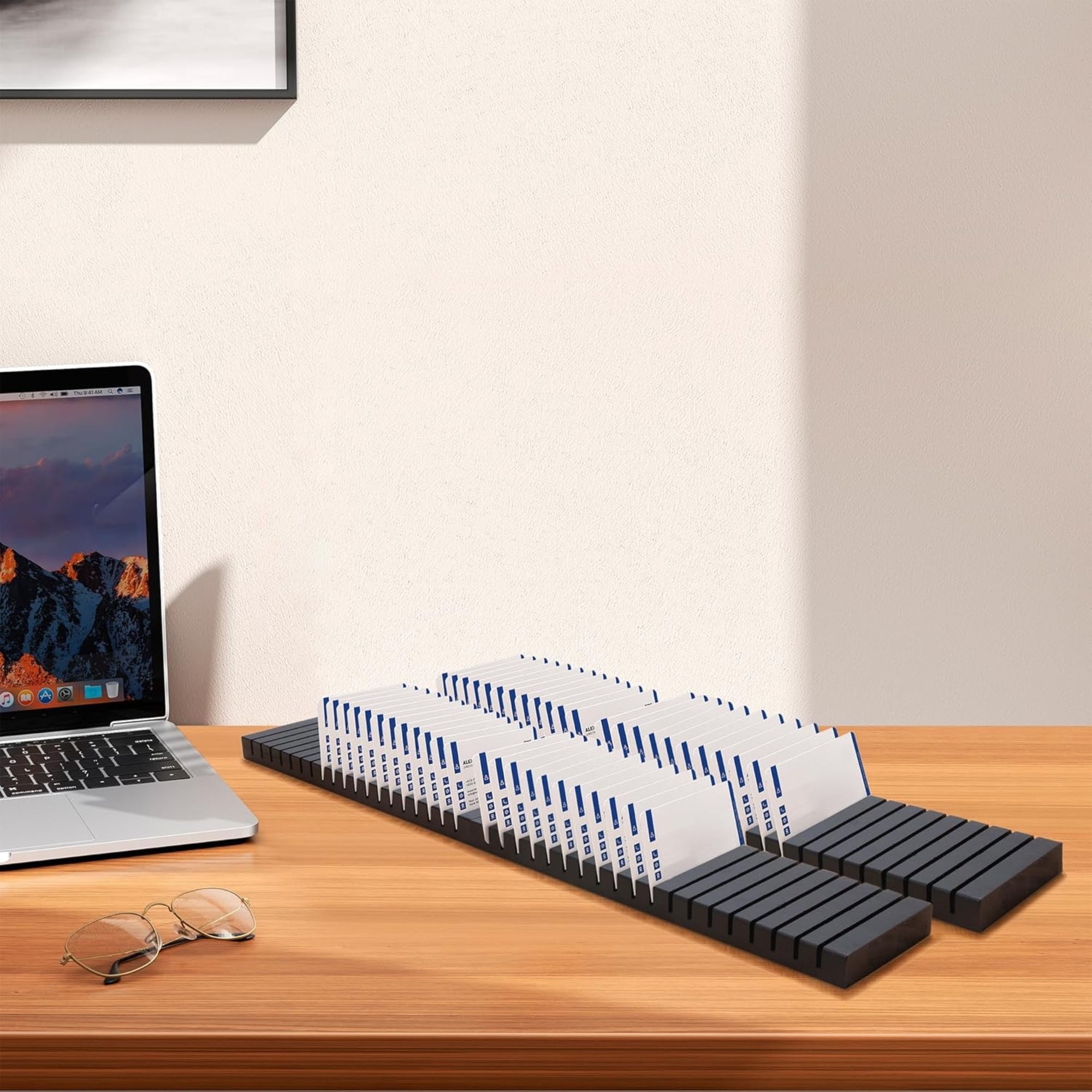Keep your workspace organized and professional with the WILLOWDALE 4-piece wooden name badge holder set. These 12-inch black display stands are ideal for neatly presenting name tags, ID badges, or business cards at office desks, receptions, or trade show booths. Featuring a detachable design, they offer flexibility for use as individual trays or a unified display system.