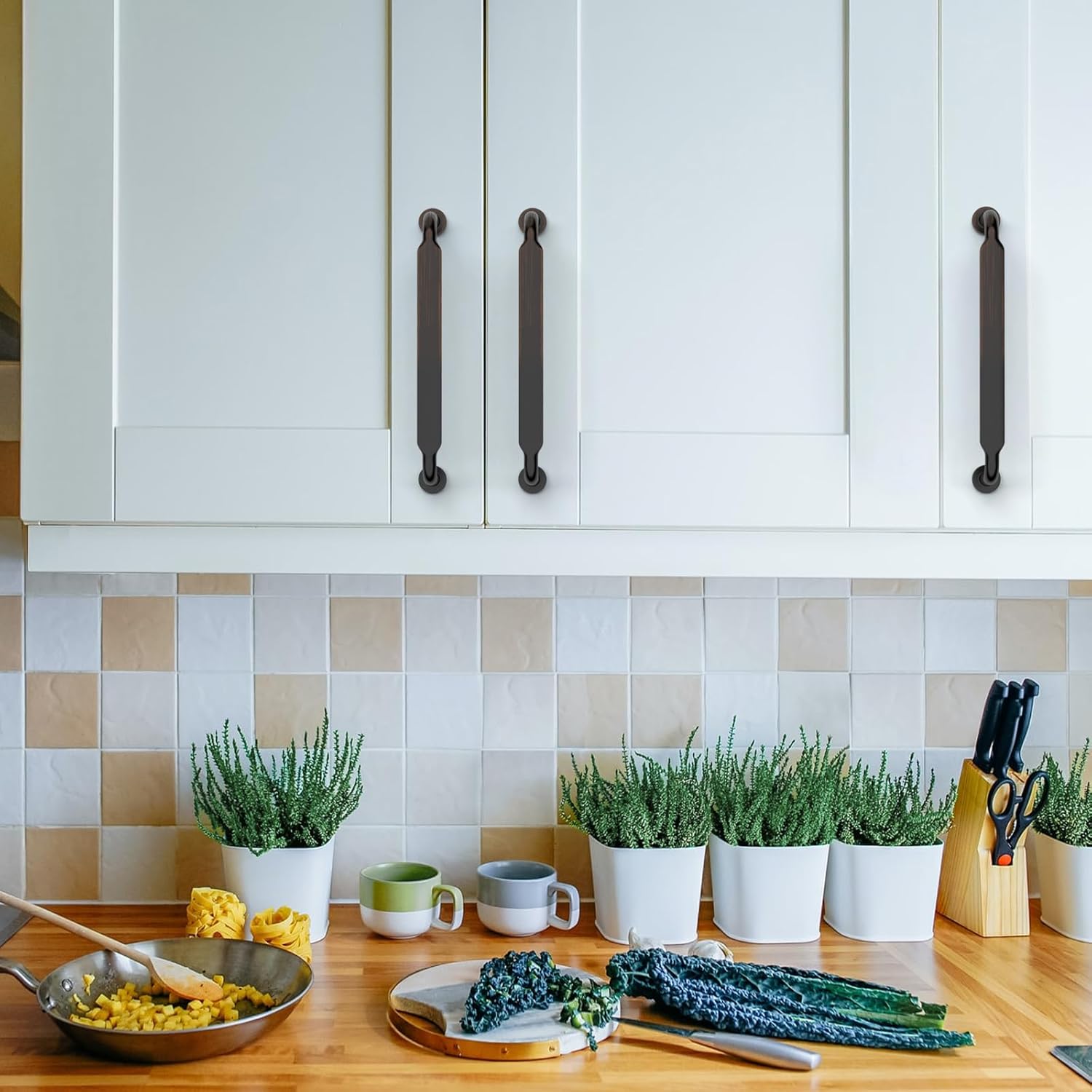 Upgrade your kitchen or bathroom with the Asidrama 10-Pack Oil Rubbed Bronze Cabinet Handles. Each 5-inch pull features a timeless arch and bow shape with a rich bronze finish, adding warmth and sophistication to your space. Made from durable zinc alloy, these handles are perfect for cabinets, drawers, or cupboards, and they come ready to install with all necessary hardware.