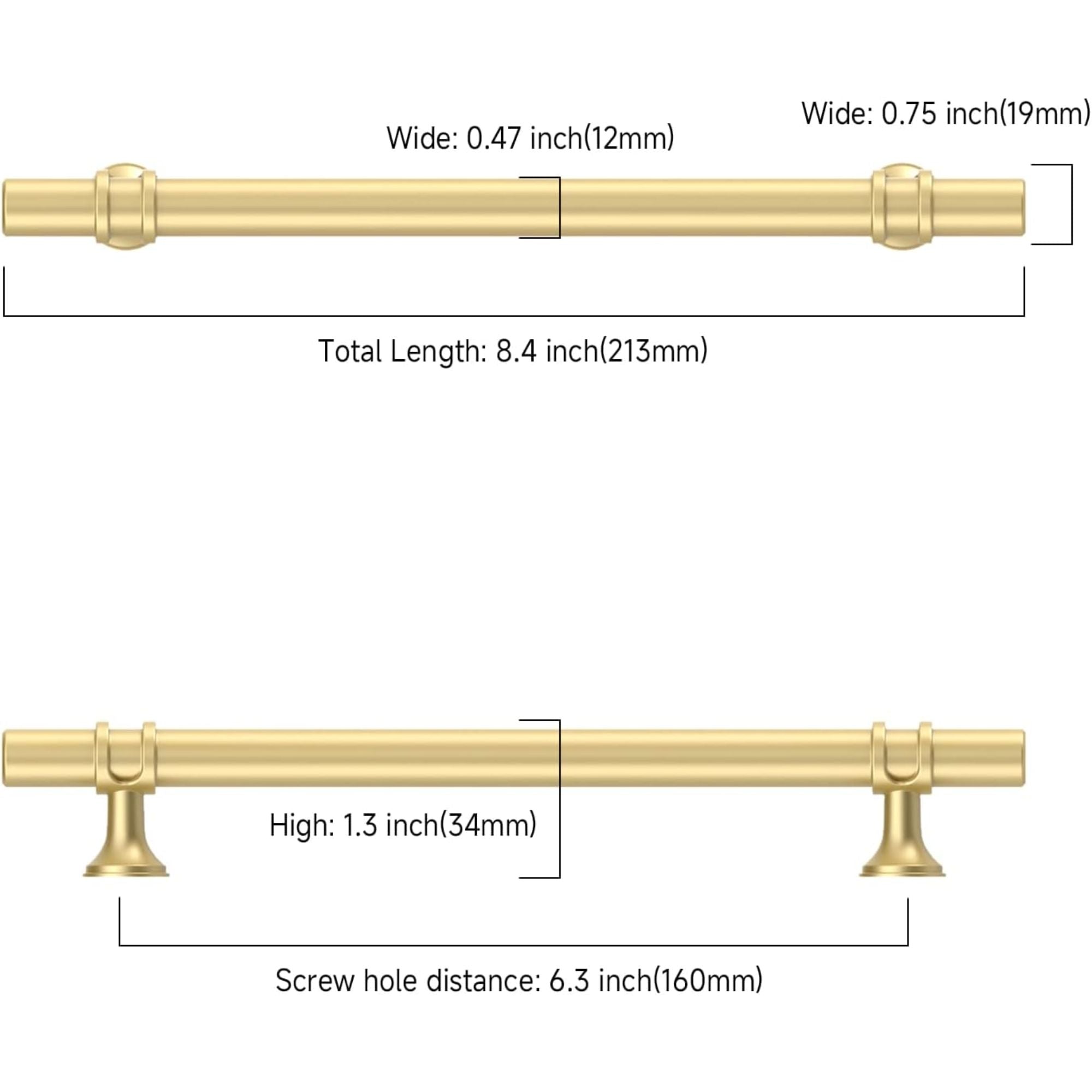 Asidrama 10 Pack 6.3 Inch (160mm) Brushed Gold Kitchen Cabinet Handles, Drawer Pulls, Cupboard Hardware