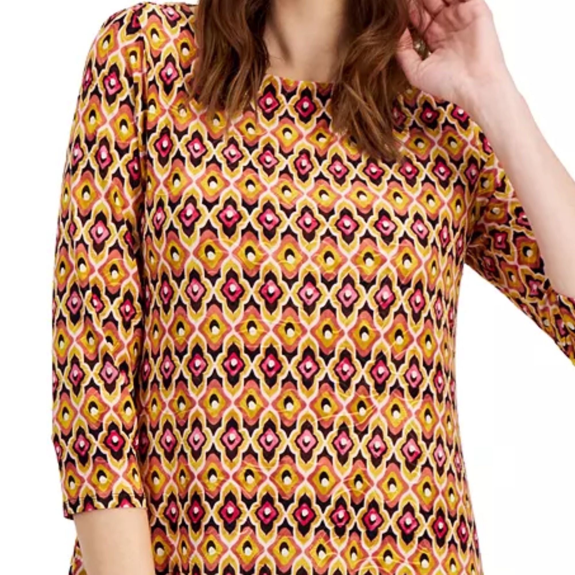 JM Collection Women's Geo-Print Jacquard Swing Top – Mustard Seed Combo, Large