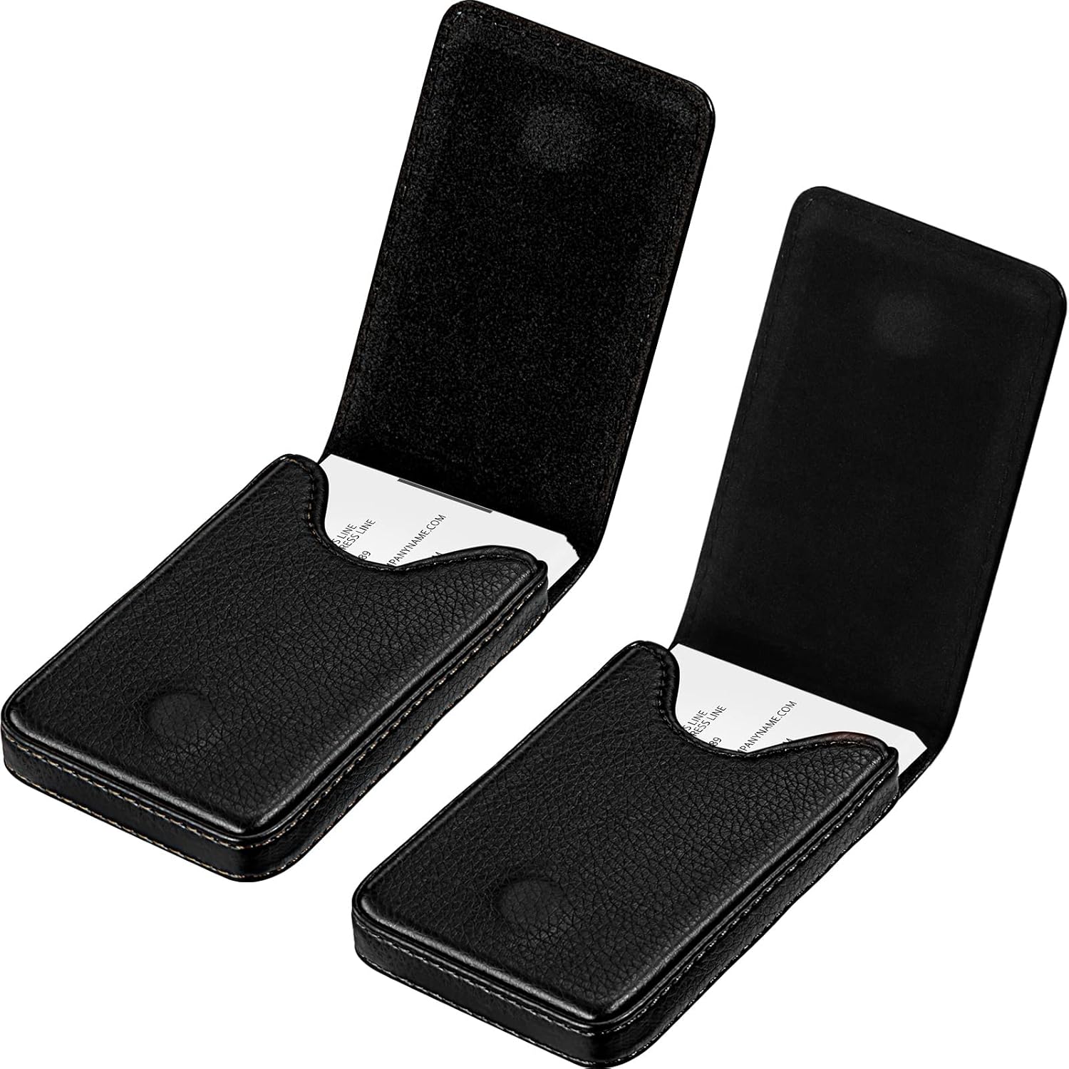 Outus 2-Piece PU Leather Business Card Holder Case – Magnetic Closure Pocket Wallet for Men and Women (Black)