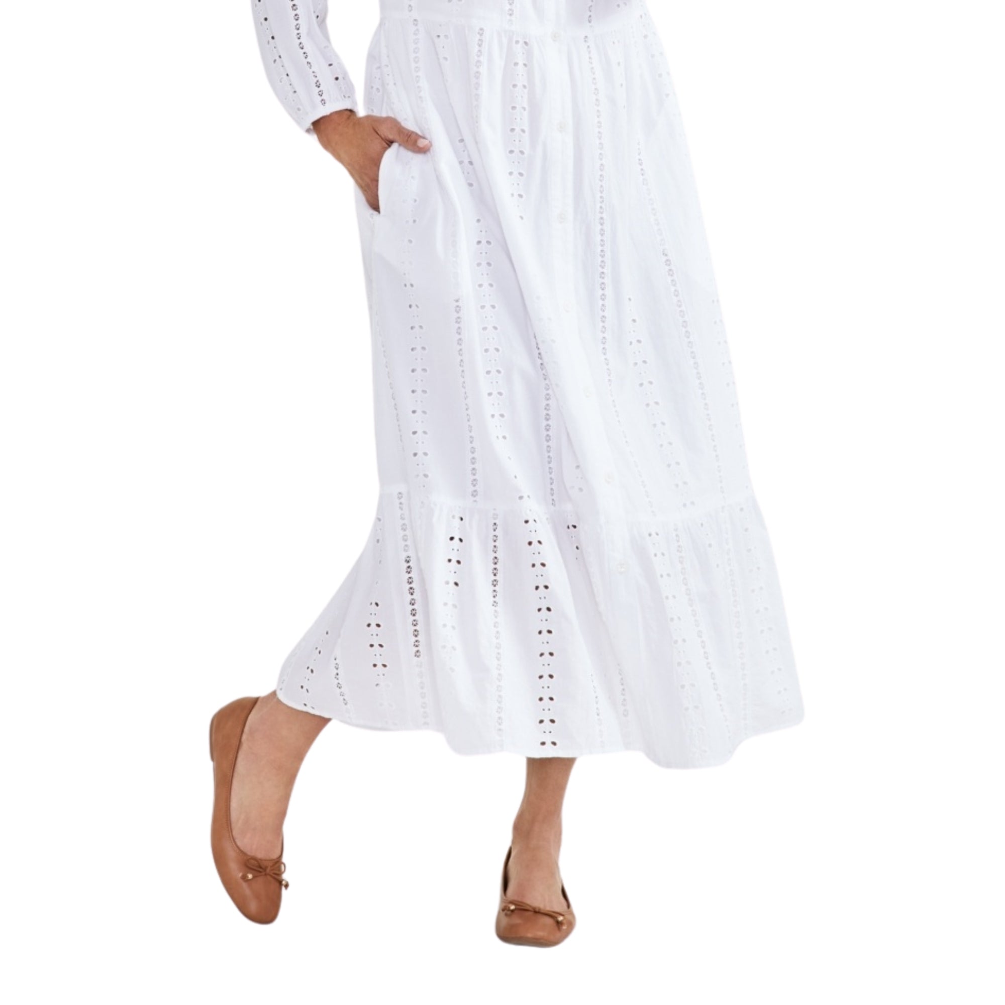 Style & Co Petite Cotton Tiered Eyelet Midi Dress – Bright White, Petite Medium